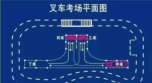 作業(yè):乙?guī)斓呢浖埽ǜ叩哪莻€(gè))入叉叉貨以后倒車直接升到頂(油缸提升的時(shí)候要加油提速,不要怠速提升),放下后稍微停一下,馬上又提升放回下層,然后倒車入丁庫,入庫時(shí)只要求整車身入庫,入庫后,貨叉要放到地,不然要扣分。丙庫的貨架一樣的操作,貨架放地上以后,倒車回甲庫起點(diǎn),貨叉也要入庫,謹(jǐn)記貨叉要后傾并提升至離地20-40cm。